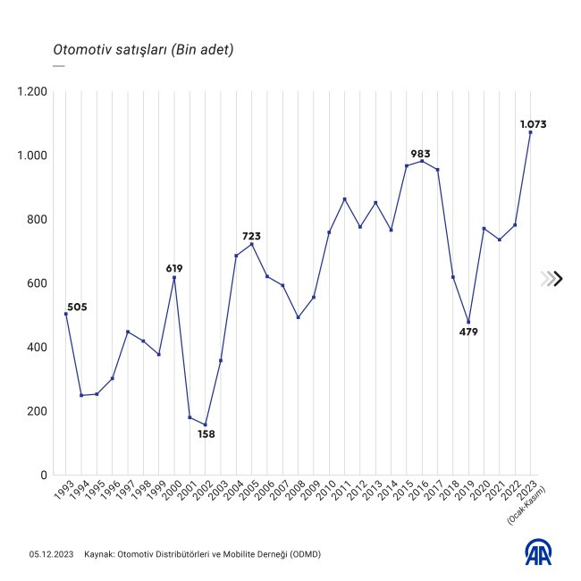 Otomotiv Distribütörleri ve Mobilite Derneğinin (ODMD) kasım ayı verilerine göre, Türkiye otomobil ve hafif ticari araç toplam pazarı, ocak-kasım döneminde yıllık bazda yüzde 60,8 büyüdü. Böylece Türkiye otomotiv pazarı tarihinde ilk kez 1 milyon rakamı aşılarak 1 milyon 73 bin 982 satışa imza atıldı. Daha önce en yüksek satış 983 bin 720 adetle 2016 yılında yapılmıştı.