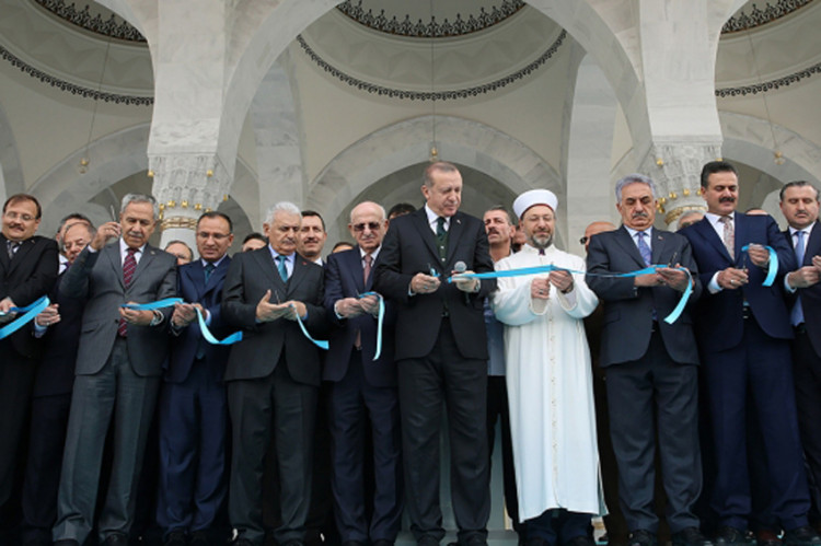Peygamber Efendimiz'in bir hadisi şeriflerinde "Kim Allah'ın rızasını talep ederek bir mescid inşa ederse, Allahü tealanın ona cennette bir ev inşa edeceğini müjdeliyor." diyen Erdoğan, "Rabbimiz de Tevbe Suresi'nde, Allah'ın mescitlerini ancak Allah'a ve ahiret gününe iman eden, namazı dosdoğru kılan, zekatı veren ve Allah'tan başkasından korkmayan kimseler imar eder." dedi.