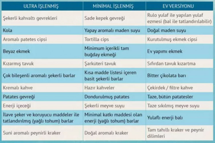 🔻 Görseldeki tabloyu da Prof. Özdoğan'ın makalesinden aldım: http://www.drozdogan.com/minimal-ultra-islenmis-gida.../ ) Tablodaki başlıklar sağlık için geleneksel ev yemeklerinin ve evde üretilen gıdaların ne kadar önemli olduğunu gösteriyor.