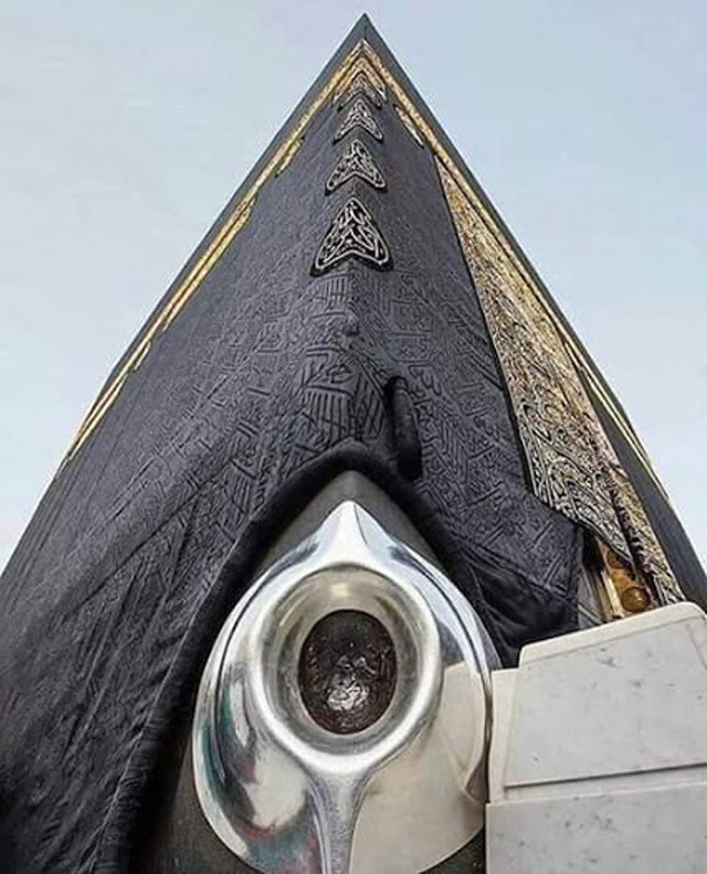 Milyonlarca elin teması ile parlamış kara taş, Kabe'deki bir yangında, ısı değişimi nedeniyle kırılarak 15 parçaya ayrılmış olup, gümüş bir çerçeve içinde ve biri çatlak 8 görünümlü, ancak 9 parça halinde durmaktadır.