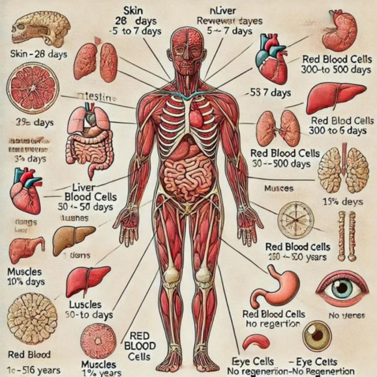 “İnsan vücudunda farklı organların kendini yenileme süreleri büyük farklılıklar gösterir. İşte bazı önemli organ ve dokuların kendini yenileme süreleri: