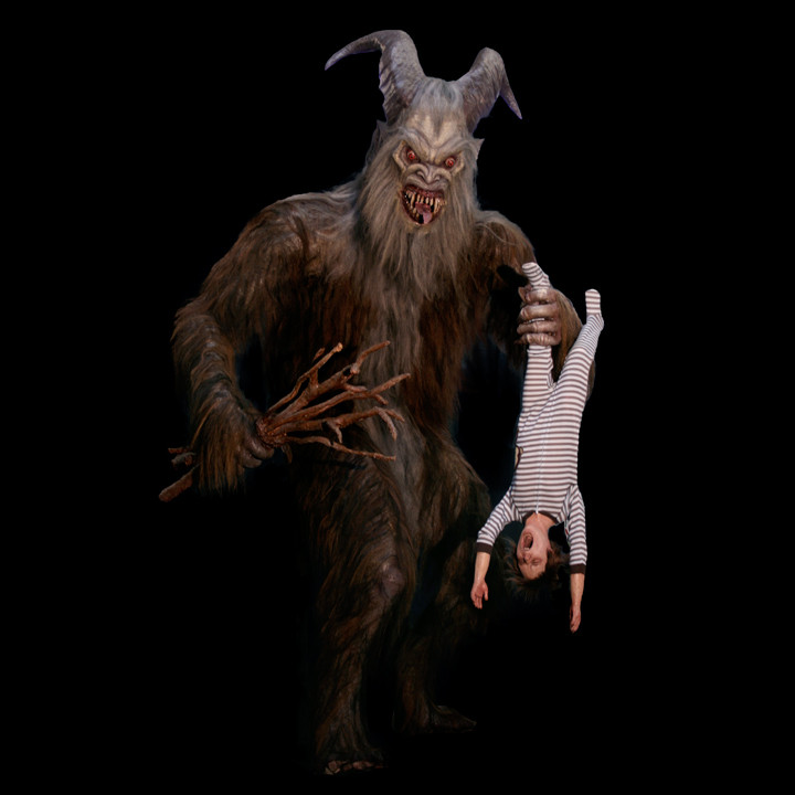 Krampus, yıl boyunca güzel davranışları için çocukları şekerlerle, hediyelerle ödüllendiren Noel Baba'ya zıt ortaya çıkmış. Çocukları döverek yuvasına götürür, çuvallara saklar ve boğar.