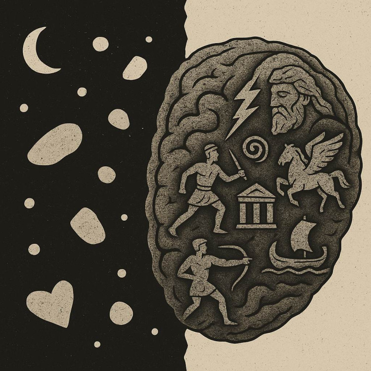 Beynimiz, bir anlatı makinesi gibi çalışır: Belirsizliği mitlerle doldurur ve kozmolojik boşluğu kapatır, korkuları sembollerle evcilleştirir ve ölüm, kaos olgularını evcilleştirir, toplumsal bağları hikayelerle güçlendirir.
