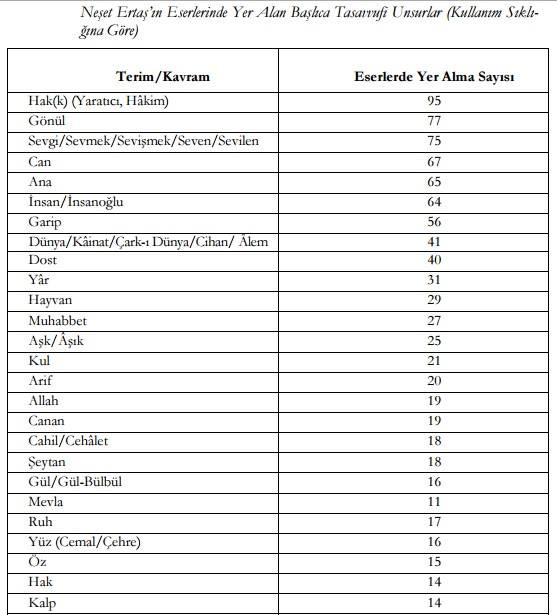 Neşet usta sufi kavramları özüne uygun biçimde kullanmış olması da dikkate değer.