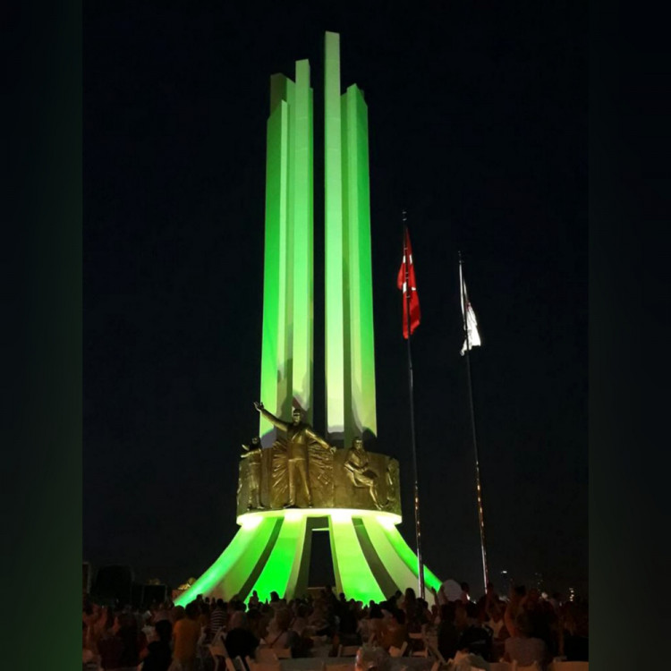 Heykeltıraş Prof. Tamer Başoğlu’nun 1972 yılında yaptığı anıt, sanatçının izni ve koordinatörlüğünde, sanatçının oğlu heykeltıraş Emre Başoğlu’nun da yer aldığı çalışmayla Karşıyaka Belediyesi tarafından bu yıl yenilenerek 41,7 metre yüksekliğe ulaştı.
