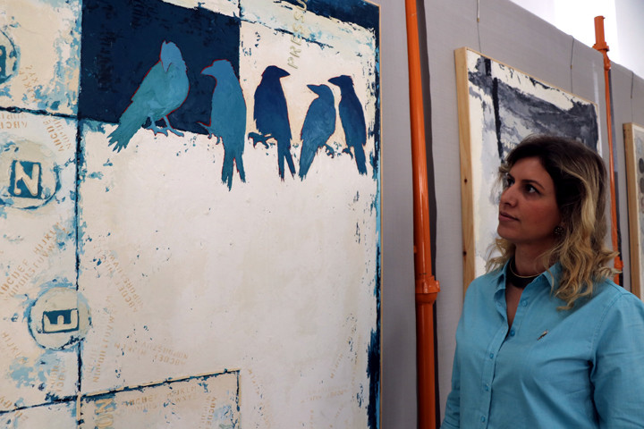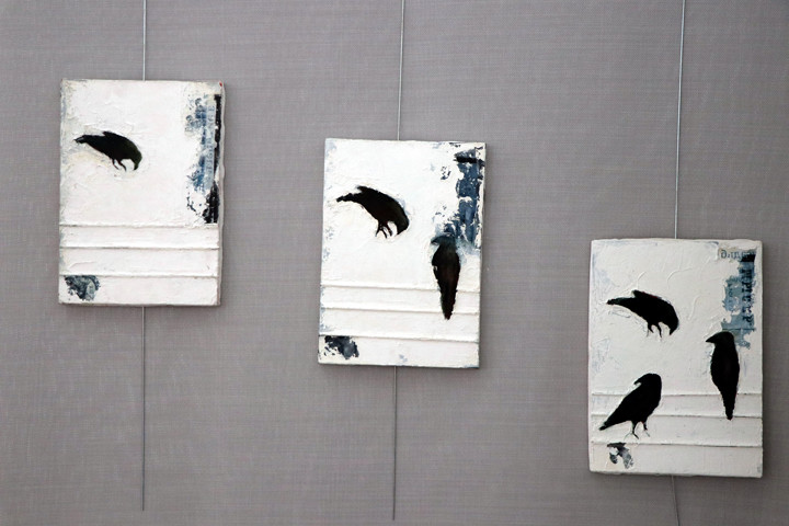 Trakya Üniversitesi (TÜ) Eğitim Fakültesi Güzel Sanatlar Eğitimi Bölümü Resim-İş Eğitimi Ana Bilim Dalı Öğretim Üyesi Doç. Dr. Aylin Beyoğlu, Devecihan Kültür Merkezi'nde açtığı "Kılavuz ve Teoriler" adlı sergide yer alan 33 yağlı boya tablonun tamamında karga imgesi yer alıyor.