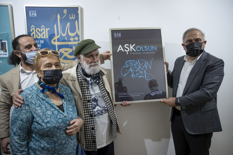 Hattat ve ressam Etem Çalışkan Etem Çalışkan'ın 59 eserinin yer aldığı "Aşk Olsun" sergisi, Fatih Belediyesi Kadırga Sanat Galerileri'nde sanatseverlerle buluştu.