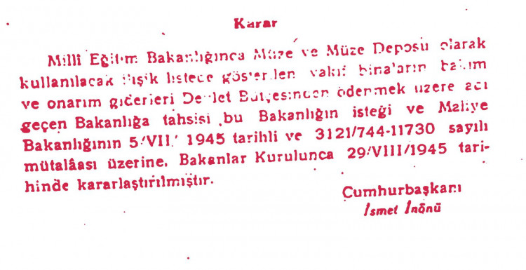Bülbül, devrin Cumhurbaşkanı İsmet İnönü tarafından onaylanıp imzalanan kararnamede Fethiye Camii’nin Milli Eğitim Bakanlığı’na müze ve müze deposu olarak verildiğinin açıkça beyan edildiğine dikkat çekti.