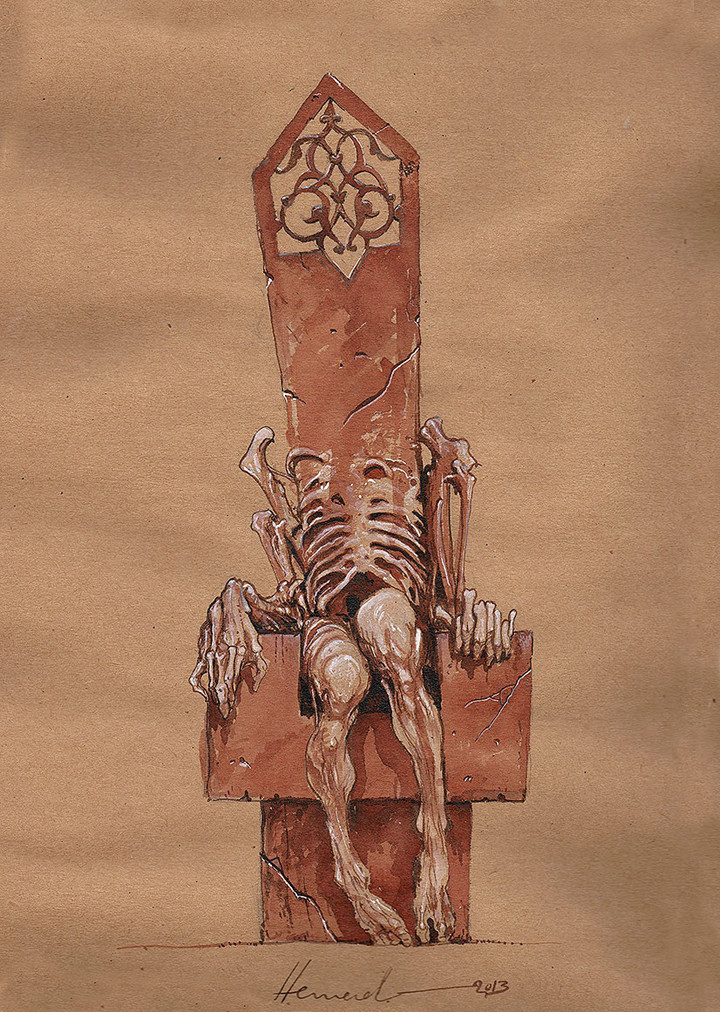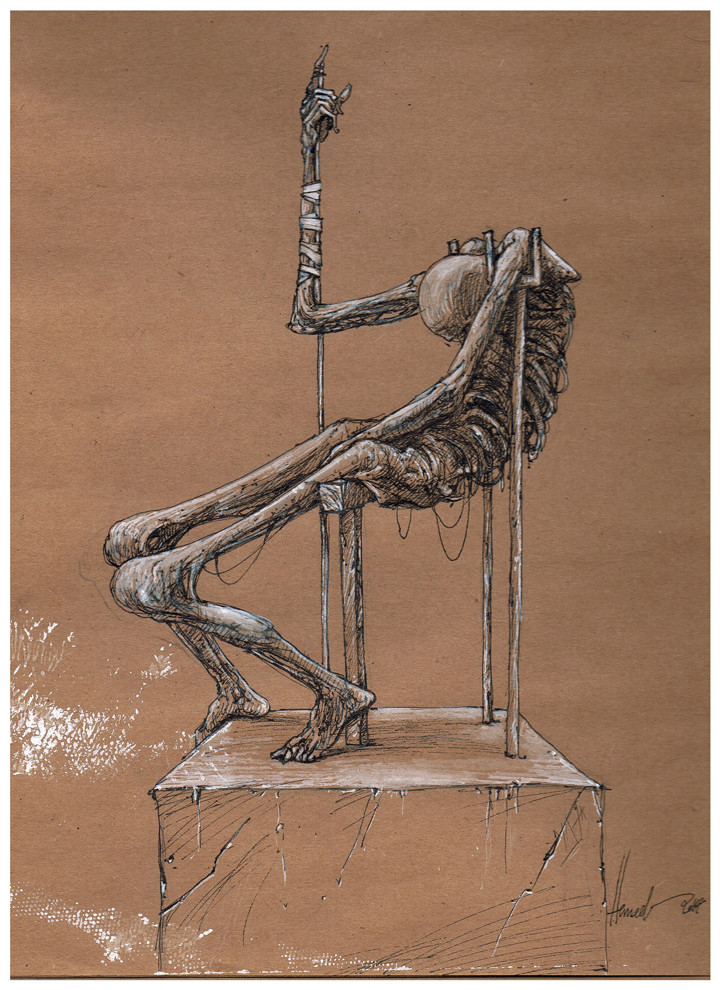 Hemad Javadzade her ne kadar “Resim benim için sanki başka bir dünyaya açılan bir kapı, gerekçilikten gerçeküstücülüğe hep kaçmışımdır’ dese de yapıtlarında son derece gerçekçi ögelerden yola çıkarak gerçeküstü bir dünya kuruyor. Örneğin uzaktan dörtnala koşan bir at olarak gördüğünüz figüre yakınlaştıkça üstüste yığılmış insan iskeletlerinden oluştuğunu kavrıyorsunuz. Yapıtlarında son derece güçlü bir yetkinlikle kullandığı insan ve hayvan anatomisini kendi gerçeküstü anlayışıyla abartıp değiştiriyor. Batılı sanatçılar gibi yol alırken aynı zamanda doğduğu büyüdüğü coğrafyanın nesnelerini mitlerini, duygusallığını ve hatta tekniklerini kullanarak doğu ile batı arasında geçiş sağlıyor. Son derece incelikle işlenmiş yapıtlarında izleyiciyi gerçeklerden alıp kendi dünyasına götürüyor sanatçı.