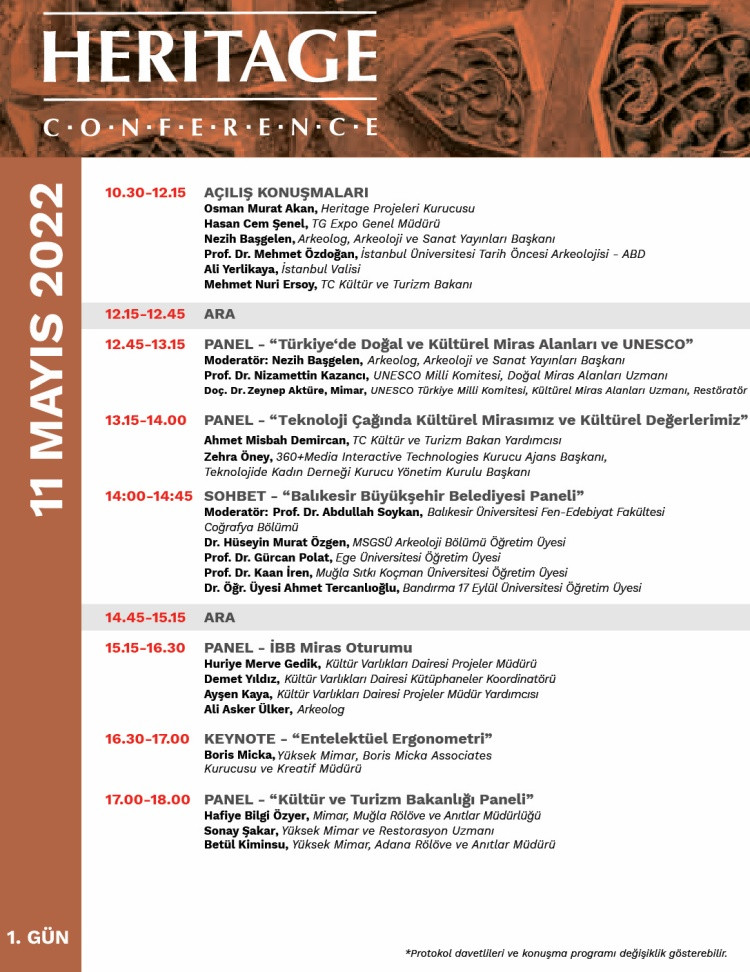 Basın toplantısının açılış konuşmasını yapan Heritage Projeleri Kurucusu Osman Murat Akan; “Ülkemiz ve özelde İstanbul, dünya kültürel miras alanları arasında önemli bir bölge. Heritage İstanbul Restorasyon, Arkeoloji, Müzecilik ve Kütüphanecilik Teknolojileri Konferans ve Fuarı da bu bilinç ve farkındalıkla doğan, gelişen bir marka olarak uluslararası alanda aynı oranda ses getirmekte. Heritage ekibi olarak; ülkemizin kültür değerlerinin korunması ve kollanması adına, uluslararası teknolojilerin tanıtılması amacıyla çıktığımız yolda altıncısını gerçekleştireceğimiz organizasyonumuzun, tüm sektörel aktörlerin buluşma yeri olduğunu görmek bize kıvanç ve onur vermekte. “Geçmişe gelecek sağlamak” mottosuyla organize edilen ve sektöre yönelik ünik bir platform olan Heritage İstanbul; konferansları ile sektörün önemli gelişmeleri ve oluşumlarını tartışmak, fuarı ile ülkemizde alanlarında uzman kuruluşların katılımıyla kültür mirası üzerine dünyada gelişen trendler, güncel sistemler ve teknolojileri tanıtmak için 2015 yılından bu yana sizlerle birlikte yol alıyor" dedi.