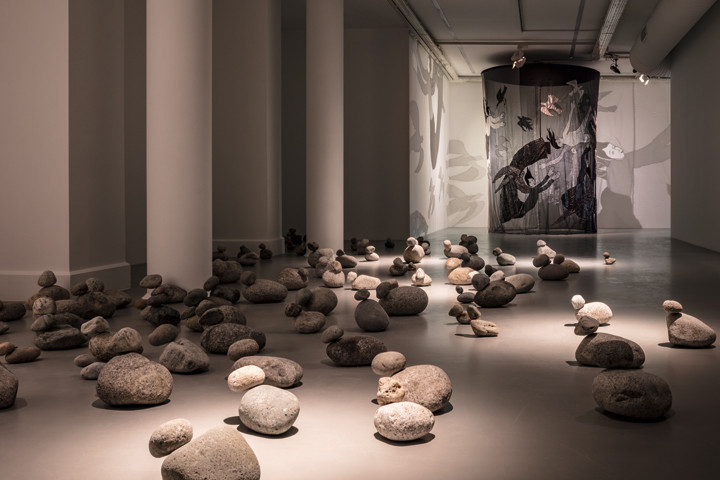 Sergide çokça yer alan mekânsal yerleştirmelerin ilki, İstiklal Caddesi seviyesindeki katta yer alan ve bu sergi için mekâna özel olarak üretilmiş olan “Hayvanlar Âlemi” (2017). Parlak renkli ve payetli kumaşlarla kaplı ejderha, yılan, Anka kuşu gibi ancak masallarda varolabilecek türden hayvan ve yaratıkların bir araya gelerek oluşturduğu bu masal âlemi, Arter’in cam bir vitrinle sokağa açılan kısmına yerleşirken, hem dışarıdan hem de binanın içinden izlenebiliyor.