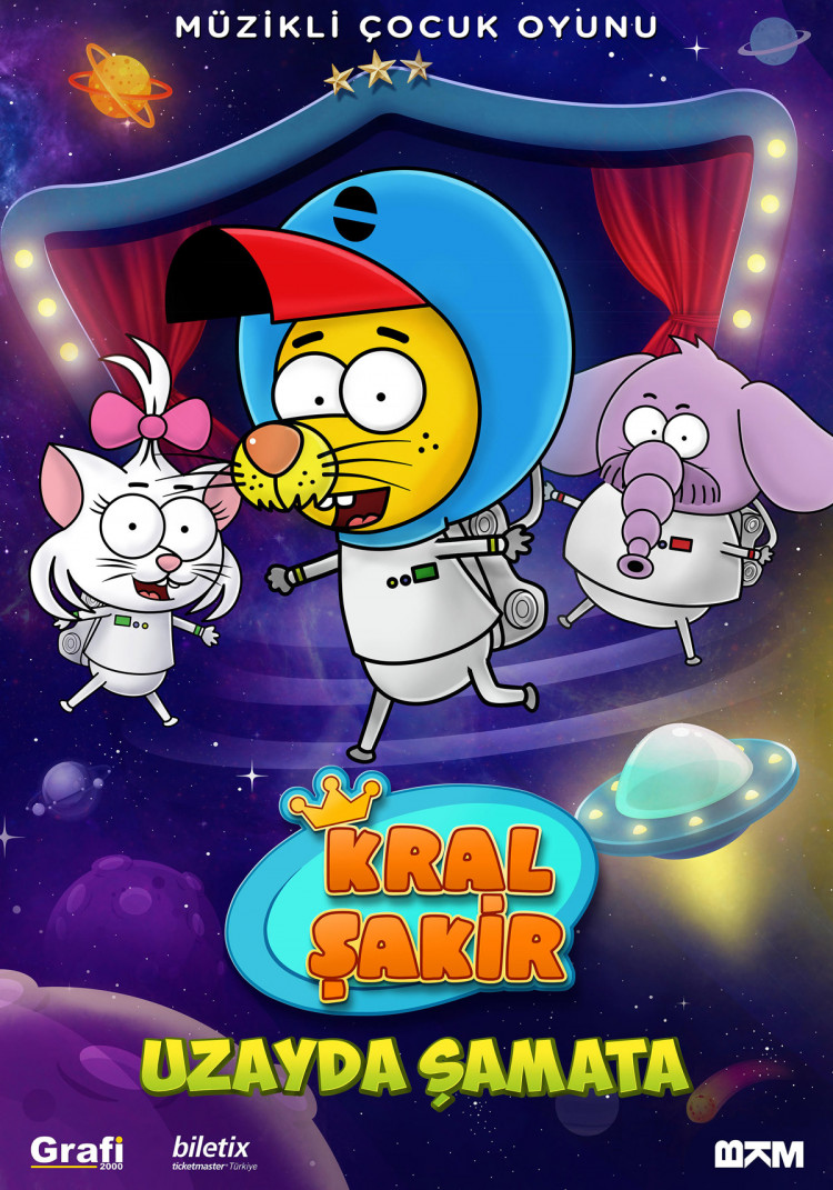 Türk aile yapısı ve kültür öğeleriyle kaynaştırılarak bir aslan ailesinin başından geçen komik ve neşeli hikayeleri anlatan Kral Şakir bu kez tiyatroda...Rejisi, ışığı, sahne tasarımları ve büyük titizlikle çalışılan zorlu kostümleriyle “Kral Şakir - Uzayda Şamata” 3 ay süren hazırlık çalışmasının ardından tiyatro oyunuyla sevenleriyle buluşmaya devam ediyor.