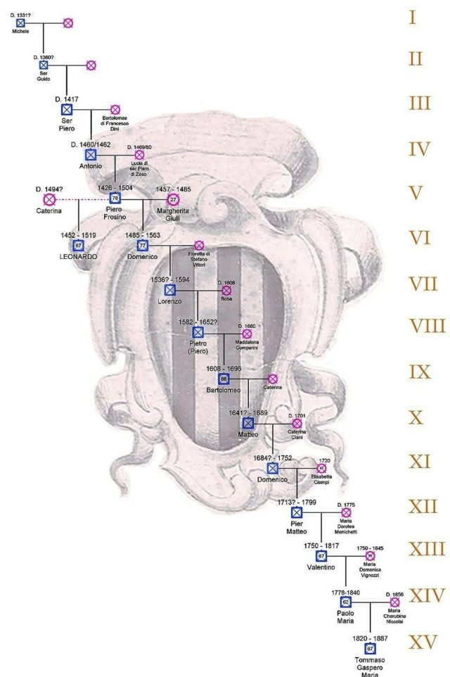 Rönesans dönemi İtalyan sanatçı ve mucit Leonardo da Vinci'nin soy ağacı, 690 yıl ve 21 kuşak boyunca izlendi; 14 yaşayan erkek torun ortaya çıkarıldı. Alessandro Vezzosi ve Agnese Sabato adlı tarihçiler da Vinci ailesinin soyunu bir araya getirmek için on yıl boyunca tarihi kayıtları inceledi.