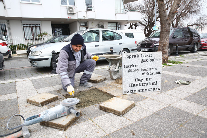 Güzel Günler Göreceğiz, En güzel, Bugün Pazar, Ceviz Ağacı şiirlerinden dörtlüklerin yazıldığı kaldırım taşları Kadıköy sokaklarında yürüyenlere Nazım Hikmet’in dizeleri yol arkadaşlığı yapacak.