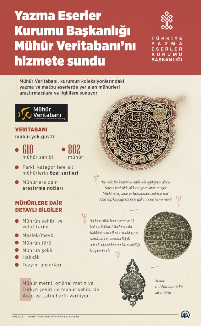 Türkiye Yazma Eserler Kurumu Başkanlığı (TYEKB) tarafından hazırlanan "MühürVeritabanı" araştırmacıların ve tarih meraklılarının ilgisine sunuldu.