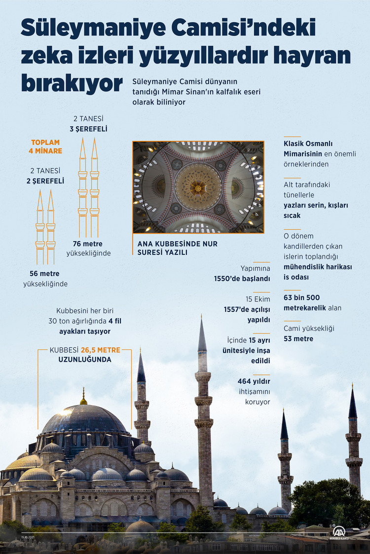 Süleymaniye Külliyesi yapıldıktan sonra bulunduğu mahal Süleymaniye tepesi olarak adlandırılmıştır. Mimar Sinan'ın kalfalık eseri olan Süleymaniye Külliyesi bugün 464 yaşında Türk İslam medeniyetinin kemalini simgeleyen bir abide olarak yerinde durmaktadır. Süleymaniye Külliyesi aynı zamanda bir şehirdir. İçinde 15 ayrı ünitesiyle insanların ihtiyaçlarını karşılayabileceği bir şekilde inşa edilmiştir. İmarethaneler, hastaneler, kütüphaneler, ana ünite olarak camisi, sıbyan mektebi, 4 ayrı medrese, türbe, bakım evleri, çarşı ve dükkanlar bulunmaktadır. S