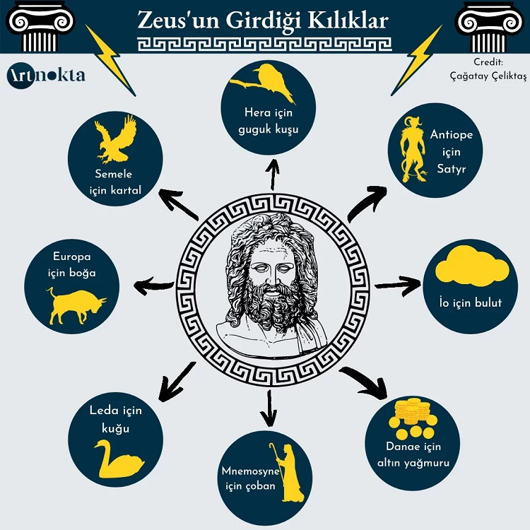 Mitolojik hikayelerde Zeus’un girdiği kılıklar