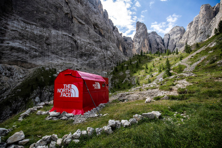 İtalyan Alplerindeki Val San Nicolò’da yer alan pop-up mağazaya sadece yürüyerek ulaşılabiliyor. Alex Honnold ve Conrad Anker’den Simone Moro’ya ve Caroline Ciavaldini’ye kadar günümüzün en etkin maceraperestleri tarafından giyilen ikonik koleksiyoner parçalarını görmek isteyenleri 2 saatlik zorlu bir patika yürüyüşü bekliyor.