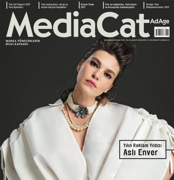 MediaCat 2018’i, Ocak sayısının kapağında Yılın Reklam Yıldızı unvanıyla yer alan Aslı Enver ile karşılıyor. “Şatafat” temasıyla sadeliğe ulaşmanın zorluğunu ve değerini ifade etmeyi amaçlayan fotoğraf kareleri ise Dilan Bozyel’e ait.