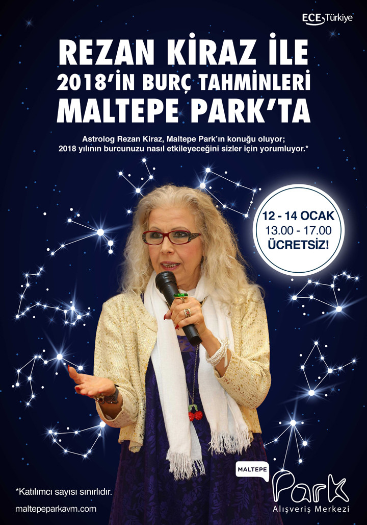 Ece Türkiye Proje Yönetimi A.Ş. tarafından yönetilen Maltepe Park Alışveriş Merkezi 12, 13, 14 Ocak tarihlerinde “Astroloji Günleri” etkinliğinde ziyaretçilerini ünlü astrolog Rezzan Kiraz ile buluşturuyor.