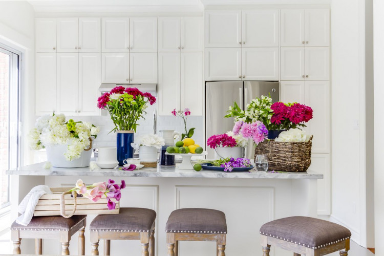 - 2018 de mutfaklar daha çok oturma odası görünümünde, ahşap ile gri tonlarının ve vizon renginin kombinasyonları, açık raflarda kitaplar, bitkiler, resim çerçeveleri, oturma alanları, ada etrafı ve sabit oturumlar ile çeşitleniyor.