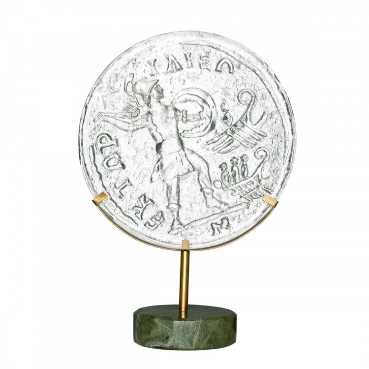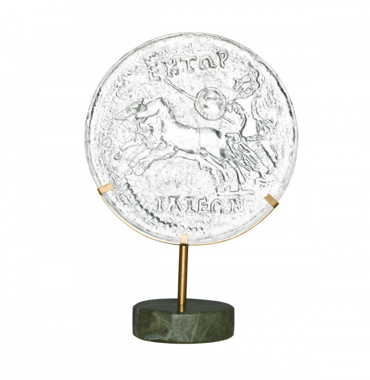 El imalatı camdan yalnızca 2000 adet üretilen, ‘pate de verre’ tekniği ile şekillendirilen ve ayak kısmında Teos yeşili mermer kullanılan Troya Sikke Cam Obje Paşabahçe Mağazaları’nda tarih ve sanatseverlerin beğenisine sunuluyor.