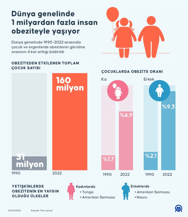 Dünya Obezite Fedarasyonu 2023 verileri dünyada 4 milyar insanın fazla kilolu veya obez olduğunu açıkladı.