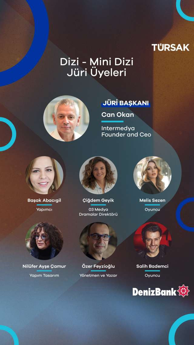 Bu yıl 6’ncısı düzenlenen DenizBank İlk Senaryo İlk Film Yarışması’nda, başkanlığını Inter Medya’nın Kurucusu ve CEO’su Can Okan’ın yapacağı Dizi – Mini Dizi Senaryo yarışma jürisinde; yapımcı Başak Abacıgil, O3 Medya Dramalar Direktörü Çiğdem Geyik, oyuncu Melis Sezen, sanat yönetmeni Nilüfer Ayşe Çamur, yönetmen ve yazar Özer Feyzioğlu ve oyuncu Salih Bademci yer alıyor.