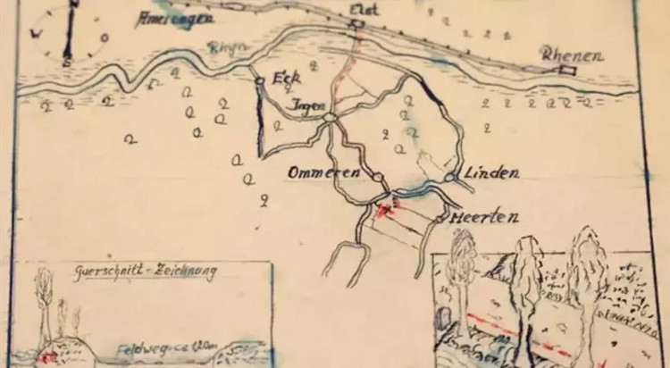 İkinci Dünya Savaşı sonrası ülkedeki Alman varlıklarını araştıran Hollanda Yönetim Enstitüsü'nün arşivlerine ait bu harita, Naziler tarafından saklandığı belirtilen bir hazine sandığına ilişkin bilgiler içeriyor. Ulusal Arşiv yetkilisi Annet Waalkens’e göre bu; saatler, pırlantalar ve mücevherlerle dolu dört cephane kutusundan oluşan birkaç milyon euro değerinde bir hazine. O dönem Arnhem’de bulunan eski Nazi askeri Alman Helmut Sonder, bu değerli eşyaları arkadaşlarıyla birlikte Ağustos 1944'te Rotterdamsche Bank'ın Arnhem kentindeki şubesinden çalındığı anlattı.
