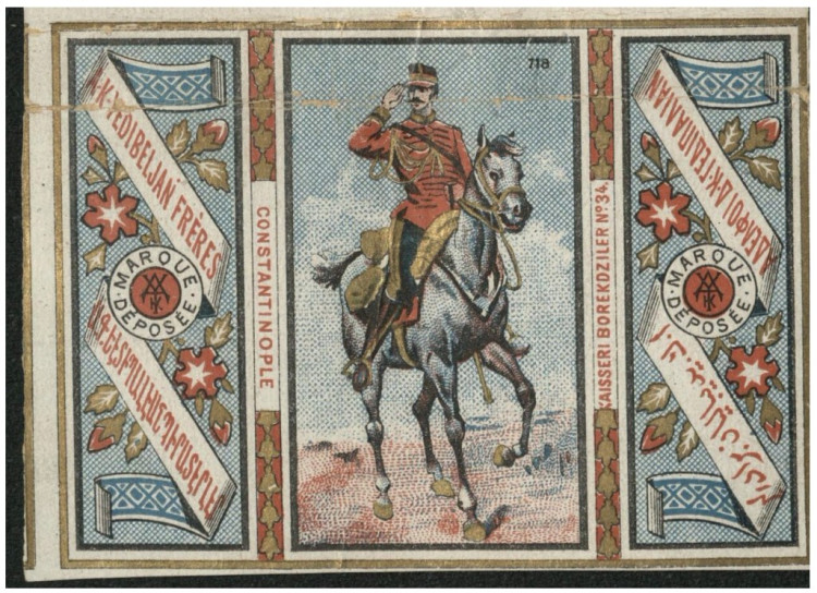 Yıl: 1894 Üzerinde bir İngiliz süvarisi, “Yedi Balyan Biraderler” ibaresi ve el resmiyle beş parmak bulunan sigara kâğıtları piyasaya sürüldü. Ankara Valiliği, beş parmağın Ankara’da yakalanan “beş Ermeni teröristi” ima ettiğini, “yedi balyan”ın ise sürgüne gönderilen Ermeni örgütü mensuplarına gönderme olduğunu raporladı. |