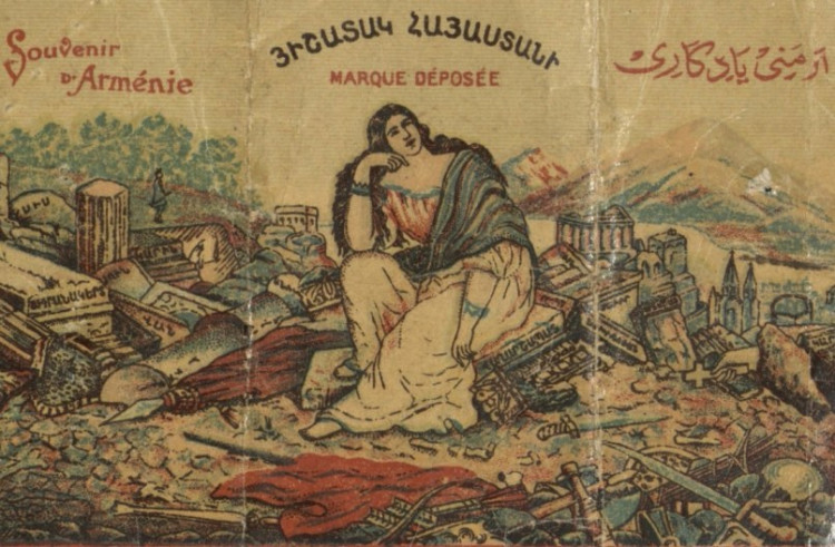 “Ermeni Yadigârı” adlı sigara kâğıdı, ortada kadın biçiminde personifiye edilmiş “Ermenistan” figürü, çevresinde ise Van, Diyarbakır, Harput gibi Osmanlı vilayetlerinin Ermeni toprağı gibi gösterildiği bir tasvir içeriyordu. İç yazısında “Ermeni milletinin resmî arması” ifadesi ve “hamiyet-i vataniyye” çağrısı yer alıyordu. |