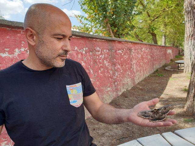 Cevdet Paşa Ortaokulu beden eğitimi öğretmeni Yalçın Yanık, kelebeği okulun bahçesinde bulduğunu söyledi.