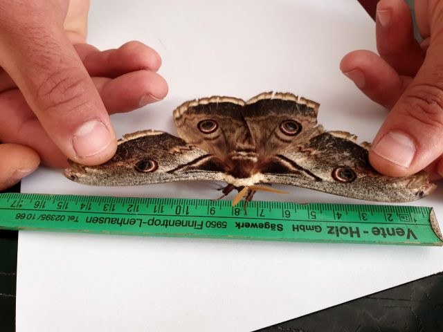 Kelebeğin, hayatında gördüğü en büyük kelebek olduğunu dile getiren Yanık, "Kanat açıklığını ölçtüğümüzde 16 santimetre büyüklüğünde olduğunu gördük. Çok nadir olarak görülen bir canlı. İlk defa gördüm ve çok mutlu oldum. Kelebeğimizi incitmeden inceledikten sonra tekrar doğaya bırakacağız." diye konuştu.