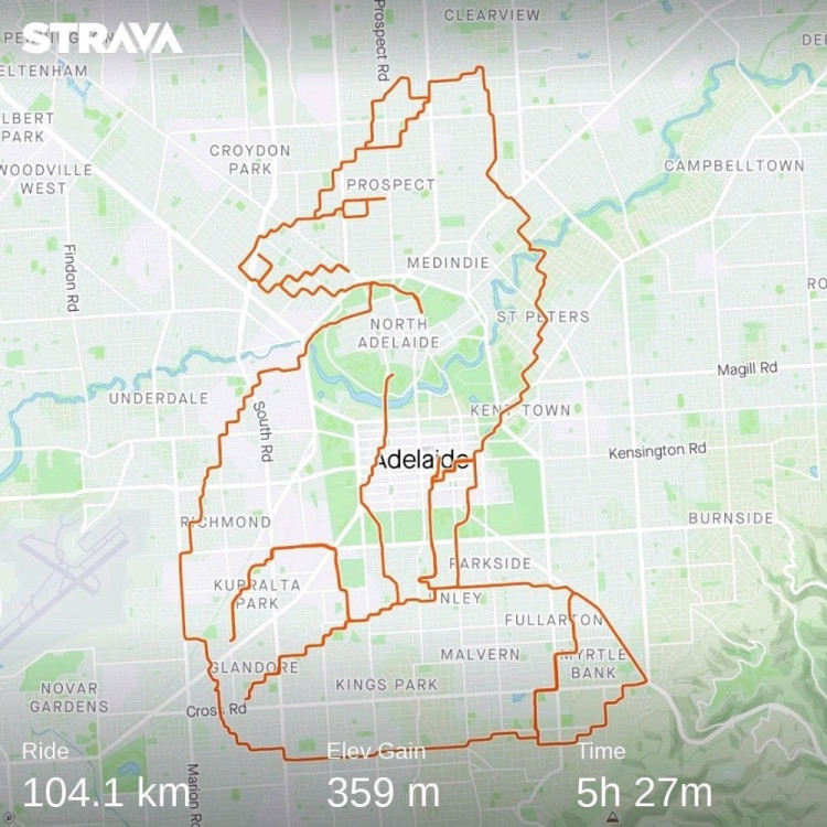 45 yaşındaki bisikletçi, insan egzersizlerini GPS verileri kullanarak takip etmek için kullanılan bir internet hizmeti olan Strava kullanarak Avustralya haritası üzerine başka çizimler de yaptı.