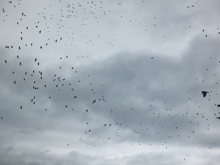 Bandırma'da bugün öğle saatlerinden itibaren ilçenin üzerinde sürü halinde uçmaya başlayan binlerce karga dikkati çekti.