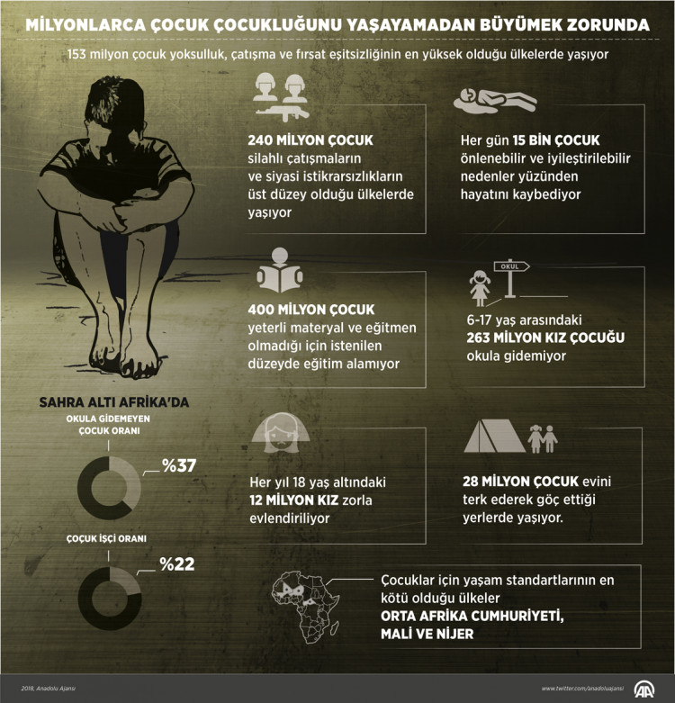 Dünyada 153 milyon çocuk yoksulluk, çatışma ve fırsat eşitsizliğinin en yüksek olduğu ülkelerde hayata tutunma mücadelesi veriyor.