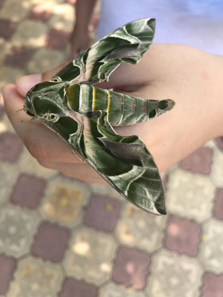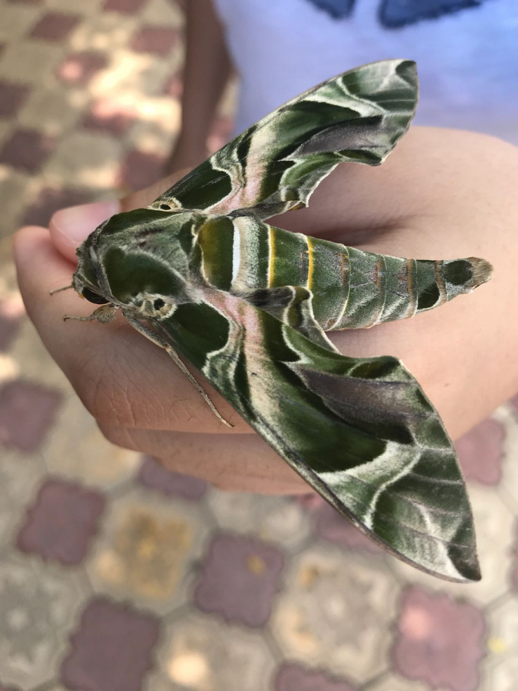 Halk arasında asker kelebek de denilen Akdeniz ve Ege kıyı şeridinde rastlanan mekik kelebeği (daphnis nerii), Güvercinlik'te görüldü.