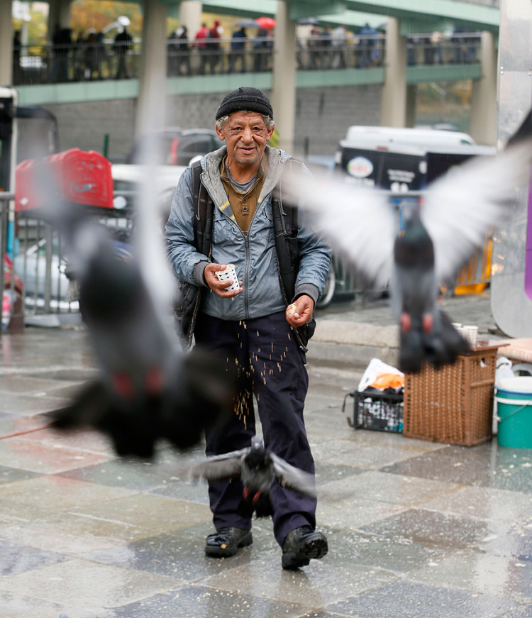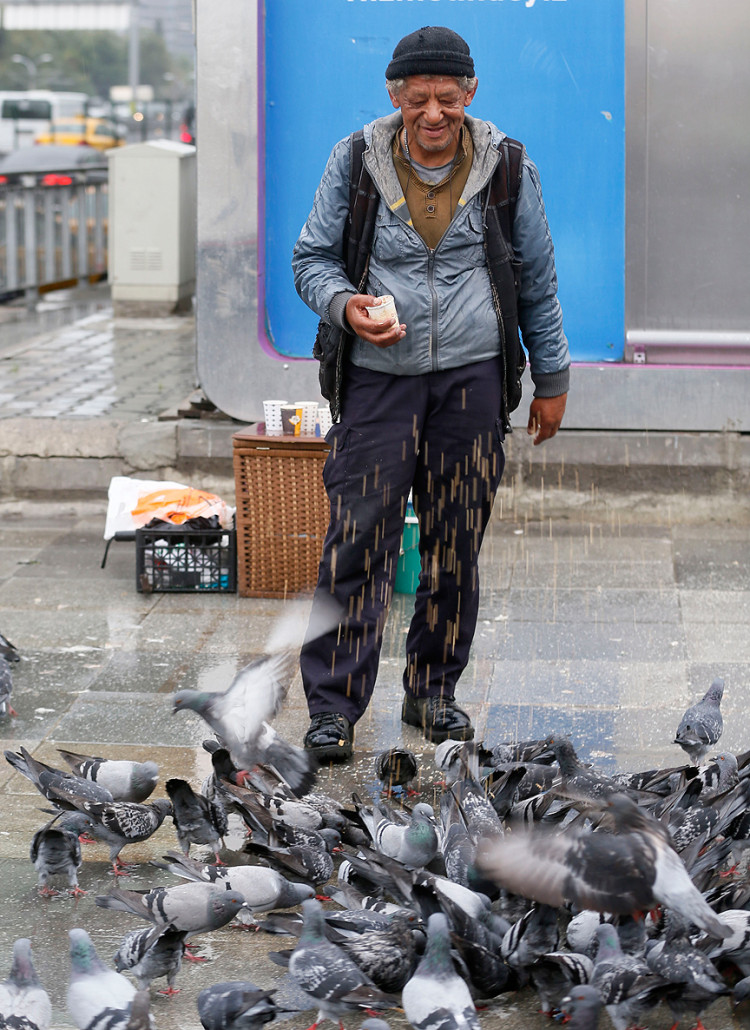 Bostancı, kuşlar için büyük yoğurt kaplarına su koyarken bir gencin yanına gelerek, kuşları velinimet olarak görüp görmediğini sorduğunu dile getirerek, "Asla!' dedim. Onlar benim evlatlarım. İnsanlar buğday almasalar bile ben onları beslemek zorundayım. İnsan evladını aç bırakabilir mi?" diye konuştu.