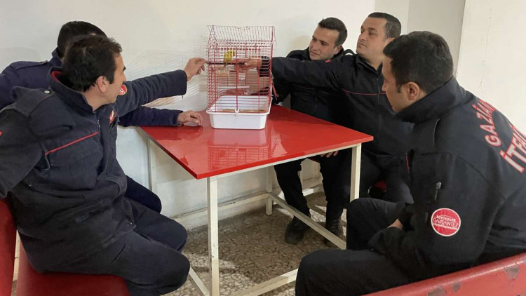 ahramanmaraş merkezli depremlerden etkilenen Nurdağı'nda çöken Müge Apartmanı'nda arama kurtarma faaliyeti yürüten Gaziantep Büyükşehir Belediyesi İtfaiye Daire Başkanlığı ekipleri, depremin ikinci günü yaralı bir muhabbet kuşunu enkazdan çıkardı.