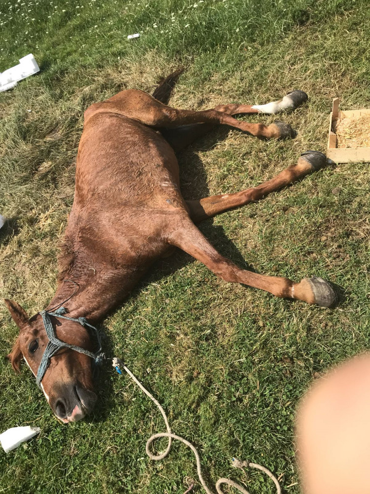 Göktürk Köprübaşı Caddesindeki boş arazide ölüme terk edilmiş at, veterinerlerce yapılan ilk tedavisinin ardından İstanbul Büyükşehir Belediyesinin Kısırkaya Hayvan Barınağına götürdü.