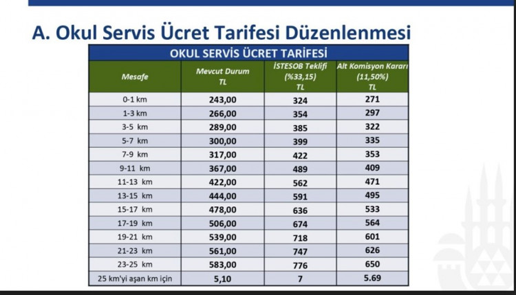 İstanbul'da öğrenci ve personel servislerinde yüzde 11,50 oranında zam teklifi UKOME toplantısında kabul edildi.