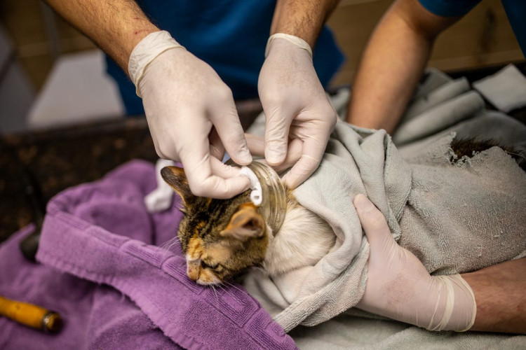 Görüntüleri izleyen hayvanseverler kediye yardım etmek üzere mahalleye geldi. Hayvanseverler, birkaç günde yakalayabildikleri kediyi veterinere götürdü. Kedi, veteriner hekim Anıl Aktoprak'ın müdahalesiyle boynundaki cam parçasından kurtarıldı.