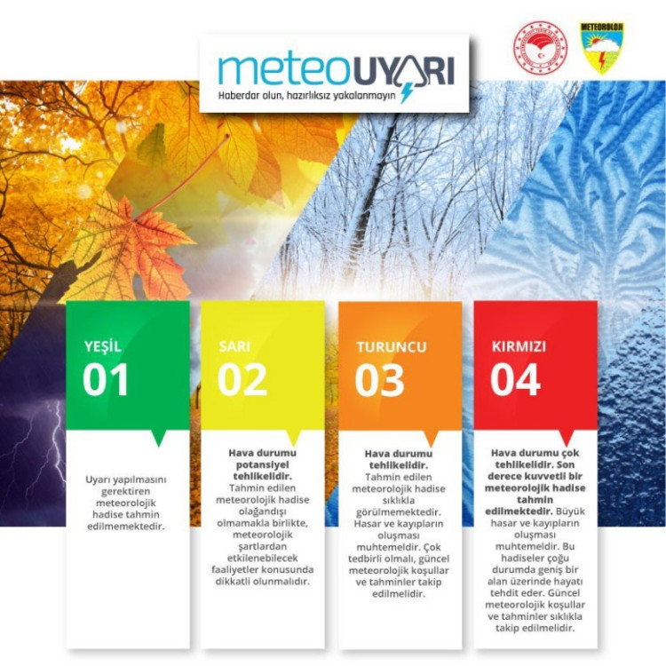 Kadıoğlu, meteorolojik uyarı renk kodlarının yalnızca teknik bir sınıflandırma olmadığını, aynı zamanda vatandaş için bir eylem rehberi niteliği taşıdığını vurgulayan Kadıoğlu, "yeşil", "sarı", "turuncu" ve "kırmızı" kodların her birinin farklı bir risk seviyesine karşılık geldiğini aktardı.