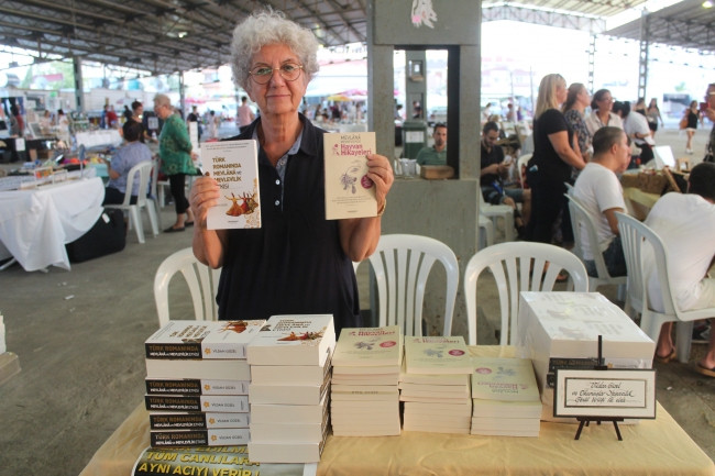 Yazar Vildan Güzel de kurulan stantlarda kitaplarını imzalayarak, satılan eserlerinin gelirlerini sokak hayvanlarına hibe etti.