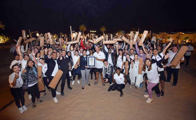 Rekor kıran yoga dersi, aynı zamanda yoga uygulayıcısı olarak eğitim almış Emirates Grubu personeli tarafından gerçekleştirildi. Girişimde sağlıklı yaşam ön planda yer alırken; Emirates’in psikoloji birimindeki kıdemli danışmanı olan sertifikalı bir farkındalık öğretmeni de yeni yıl için sağlıklı bir zihniyeti teşvik etmek amacıyla sağlıklı yaşam seansı düzenledi. dnata Travel Grup ekibinin bir üyesi de genellikle meditasyon ve şifa ile ilişkilendirilen 'tongue drum' çalan bir meslektaşının yanında rahatlatıcı müzik sunmak için etkinlikte DJ'lik yapmak üzere sahneye çıktı.