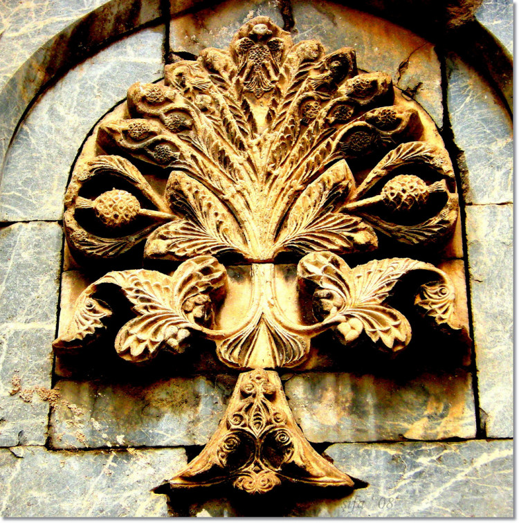 Bunlara detaylı olarak bakarsak özellikle mimaride gördüğümüz örnekler sembollerin anlamlarıyla oldukça sağlam bir şekilde örtüşmektedir. Mimaride Selçuklu Dönemi’nde önem verilen taç kapılarda yoğunlukla hayat ağacı, çift başlı kartal ve aslan figürleri görülmektedir. Bu üç unsurun bir arada kullanılması özellikle hayat ağacının merkezde olup, üzerinde çift başlı kartal, iki yanında ise aslanların bulunması yapıyı koruma amaçlı yapıldığı düşünülmektedir.
