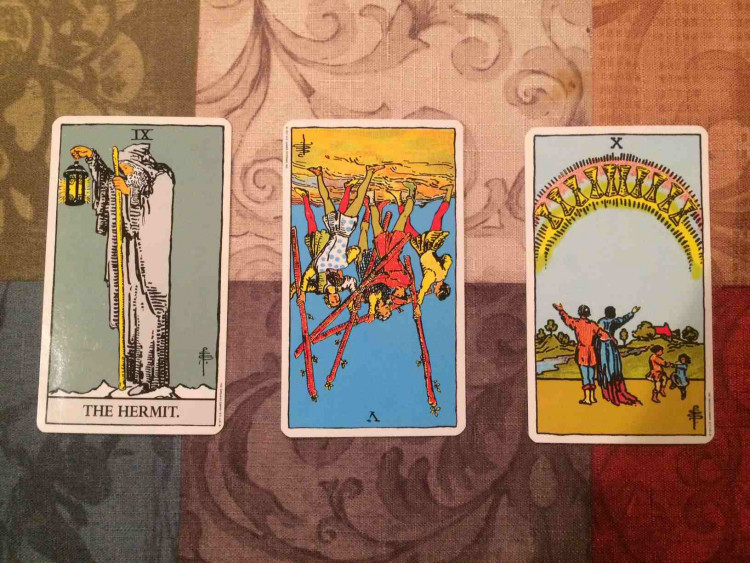 Tarot yetenekleriniz üzerindeki bilginizi tazelemek istiyorsanız bu temel Üç Kart Dizilimi’ni kullanarak hızlı bir okuma yapın ya da sadece basit bir soruna cevap arayın. Bu, okumaların en kolayıdır ve yalnızca üç adımda basit bir okuma yapabilmenizi sağlar. Yeteneklerinizi tazelerken arkadaşlarınıza ya da ailenize bu hızlı yöntemle okuma yapabilir, veya acele cevap peşinde olan meraklı biri için kullanabilirsiniz. Bu üç kart; geçmişi, şimdiki zamanı ve geleceği temsil etmektedir.